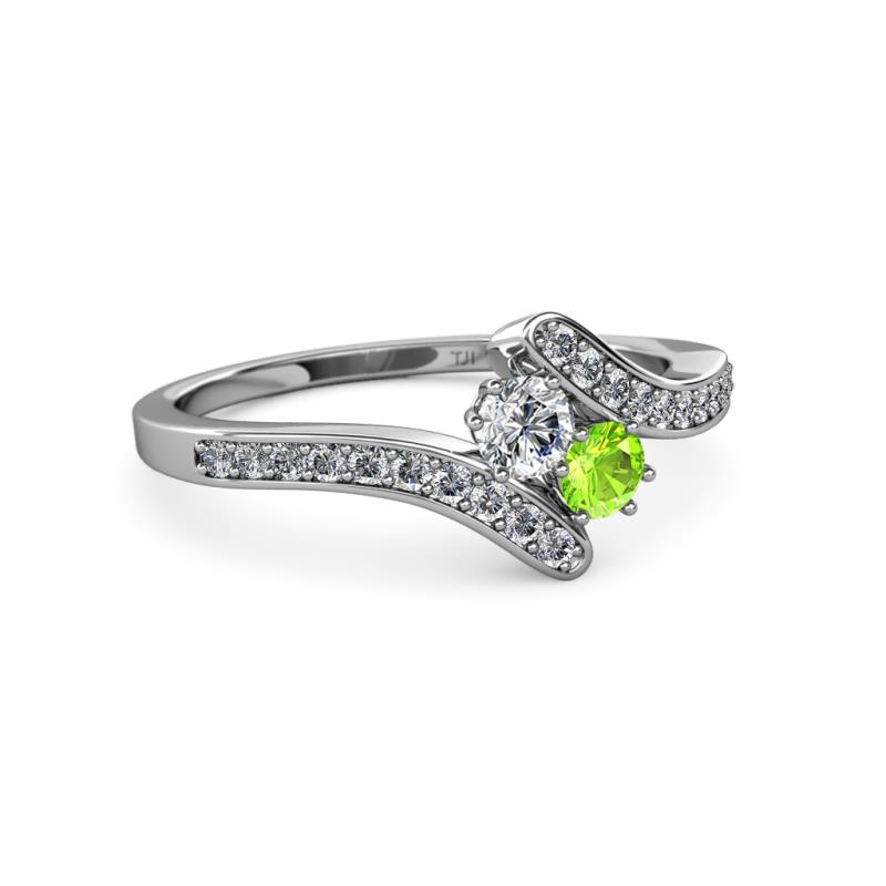 Round Diamond and Peridot 2 Stone with Side Diamonds Bypass Engagement Ring 0.73 Carat tw in 14K White Gold. More Details ...