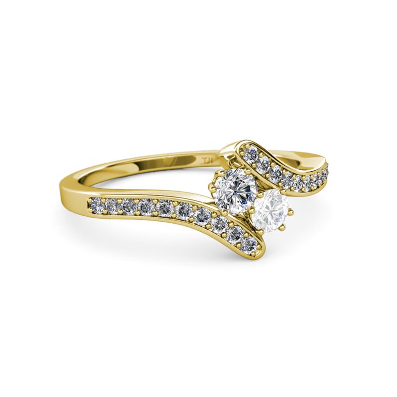 Round Diamond and White Sapphire 2 Stone with Side Diamonds Bypass Engagement Ring 0.71 Carat tw in 14K Yellow Gold. More Details ...