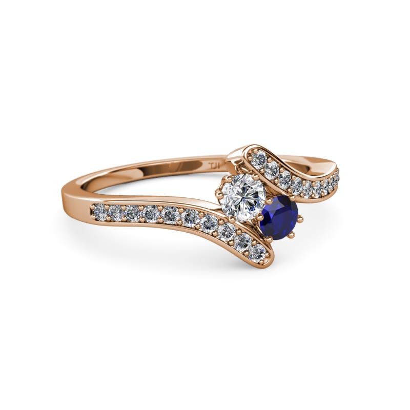 Round Lab Grown Diamond and Blue Sapphire 2 Stone with Side Diamonds Bypass Engagement Ring 0.71 ctw in 14K Rose Gold More Details ...