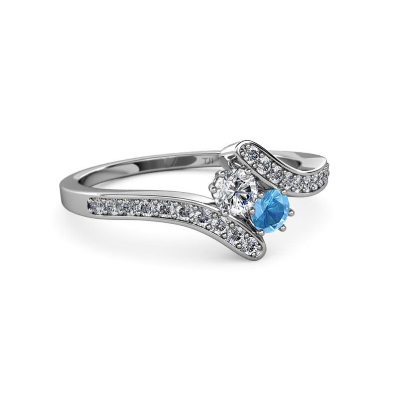 Round Lab Grown Diamond and Blue Topaz 2 Stone with Side Diamonds Bypass Engagement Ring 0.68 ctw in 14K White Gold More Details ...