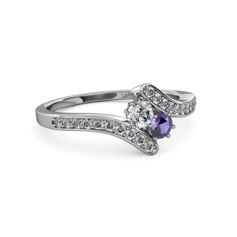 Round Lab Grown Diamond and Iolite 2 Stone with Side Diamonds Bypass Engagement Ring 0.68 ctw in 14K White Gold More Details ...