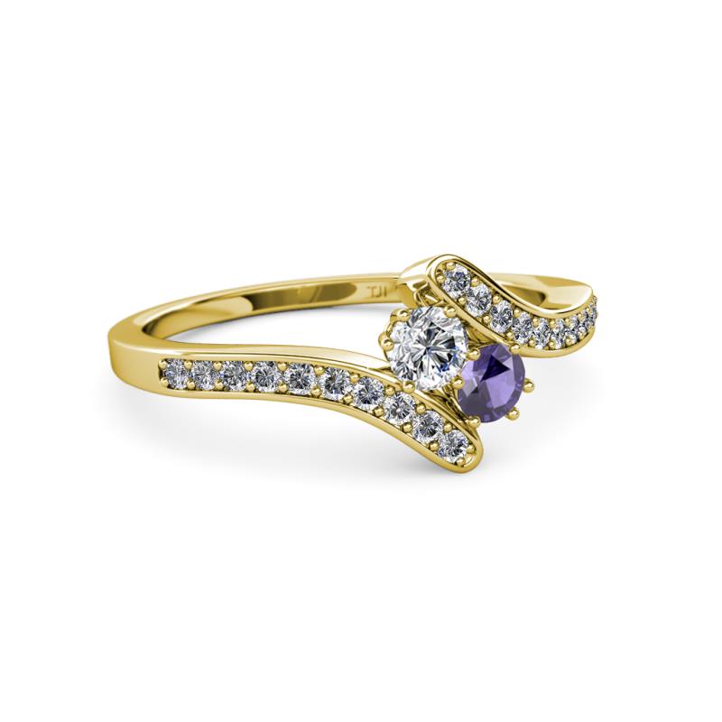 Round Lab Grown Diamond and Iolite 2 Stone with Side Diamonds Bypass Engagement Ring 0.68 ctw in 14K Yellow Gold More Details ...