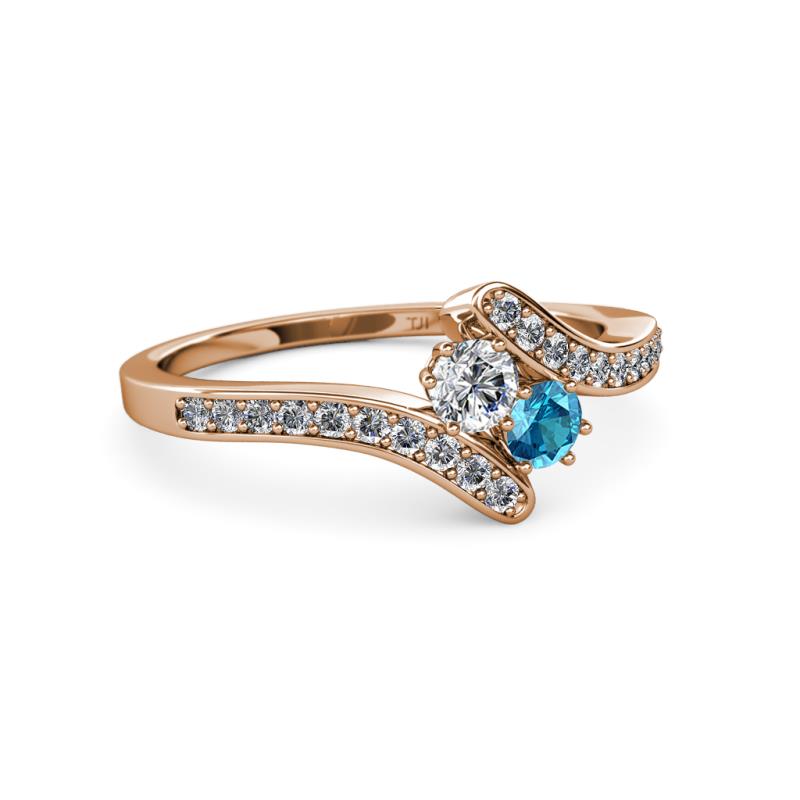 Round Lab Grown Diamond and London Blue Topaz 2 Stone with Side Diamonds Bypass Engagement Ring 0.69 ctw in 14K Rose Gold More Details ...