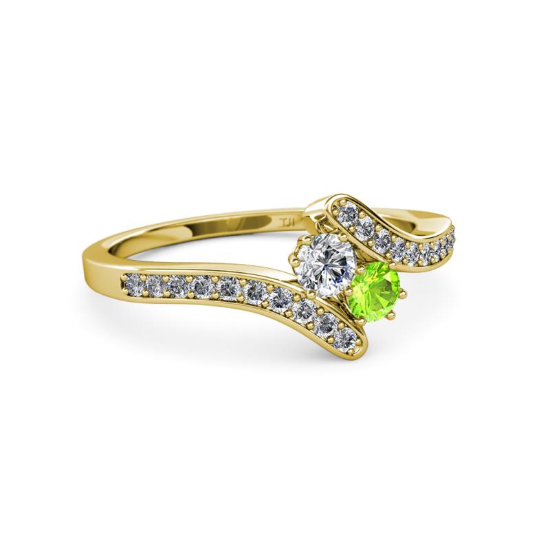 Round Lab Grown Diamond and Peridot 2 Stone with Side Diamonds Bypass Engagement Ring 0.73 ctw in 14K Yellow Gold More Details ...