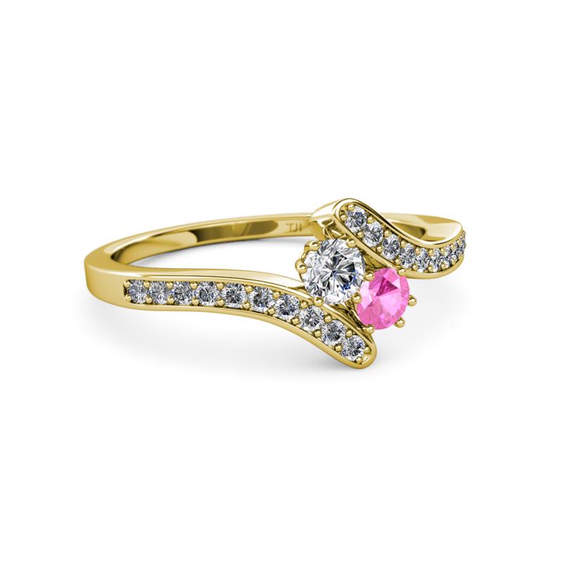 Round Lab Grown Diamond and Pink Sapphire 2 Stone with Side Diamonds Bypass Engagement Ring 0.71 ctw in 14K Yellow Gold More Details ...