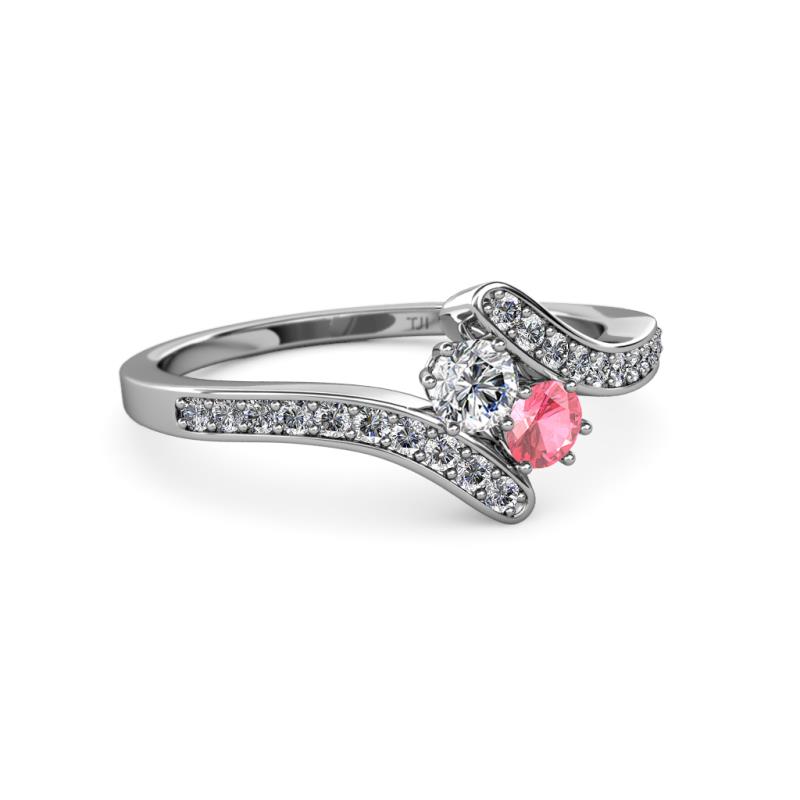 Round Lab Grown Diamond and Pink Tourmaline 2 Stone with Side Diamonds Bypass Engagement Ring 0.68 ctw in 14K White Gold More Details ...