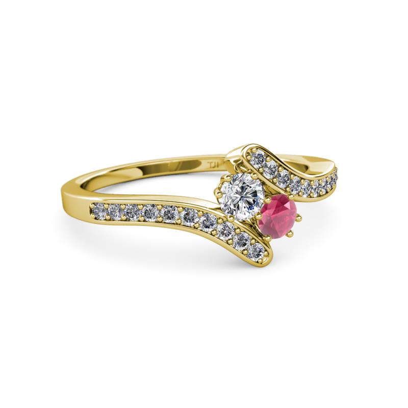 Round Lab Grown Diamond and Rhodolite Garnet 2 Stone with Side Diamonds Bypass Engagement Ring 0.73 ctw in 14K Yellow Gold More Details ...