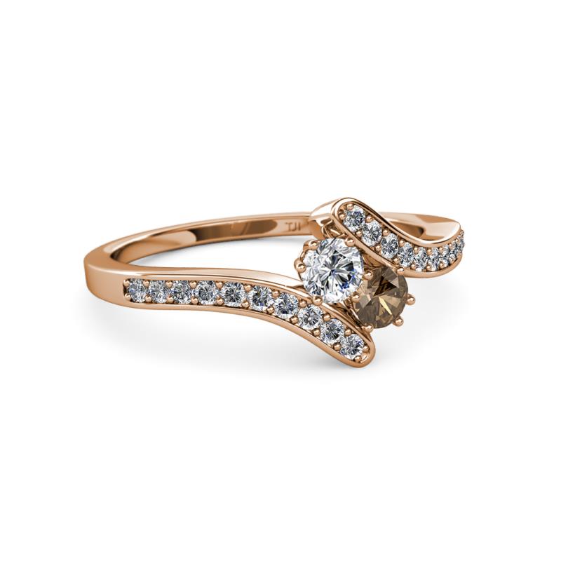 Round Lab Grown Diamond and Smoky Quartz 2 Stone with Side Diamonds Bypass Engagement Ring 0.70 ctw in 14K Rose Gold More Details ...