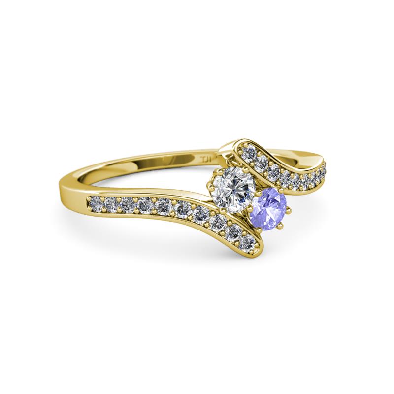 Round Lab Grown Diamond and Tanzanite 2 Stone with Side Diamonds Bypass Engagement Ring 0.70 ctw in 14K Yellow Gold More Details ...