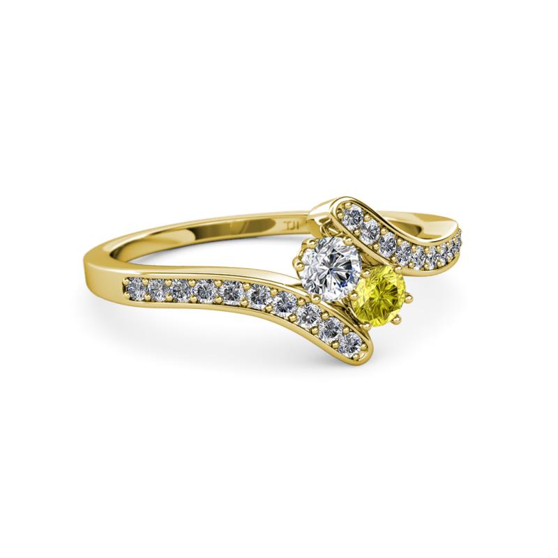 Round Yellow and White Diamond 2 Stone with Side Diamonds Bypass Engagement Ring 0.70 Carat tw in 14K Yellow Gold. More Details ...