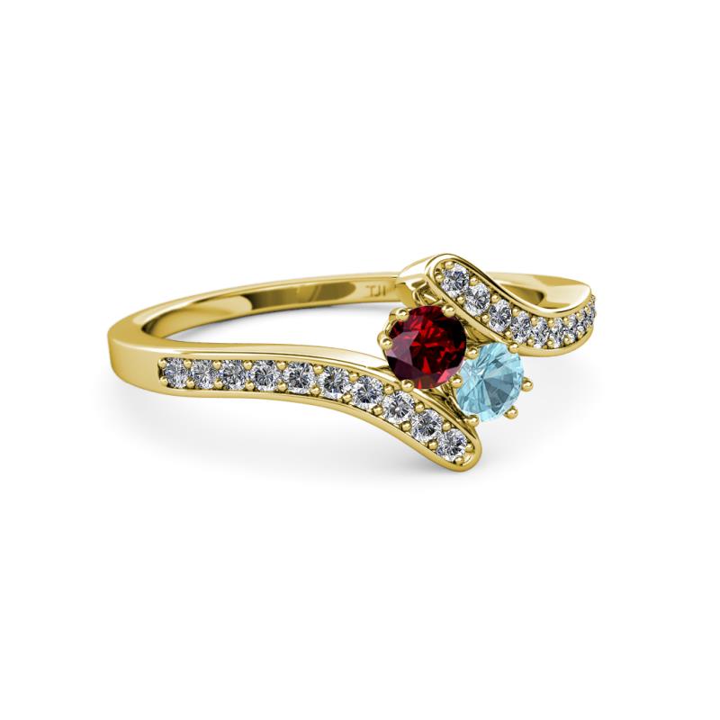 Ruby and Aquamarine 2 Stone with Side Diamonds Womens Bypass Engagement Ring 0.69 ctw 14K Yellow Gold More Details ...