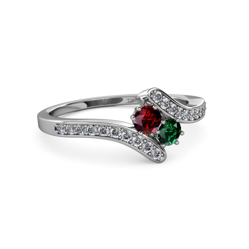 Ruby and Emerald 2 Stone with Side Diamonds Womens Bypass Engagement Ring 0.69 ctw 14K White Gold More Details ...
