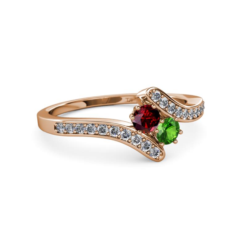 Ruby and Green Garnet 2 Stone with Side Diamonds Womens Bypass Engagement Ring 0.74 ctw 14K Rose Gold More Details ...