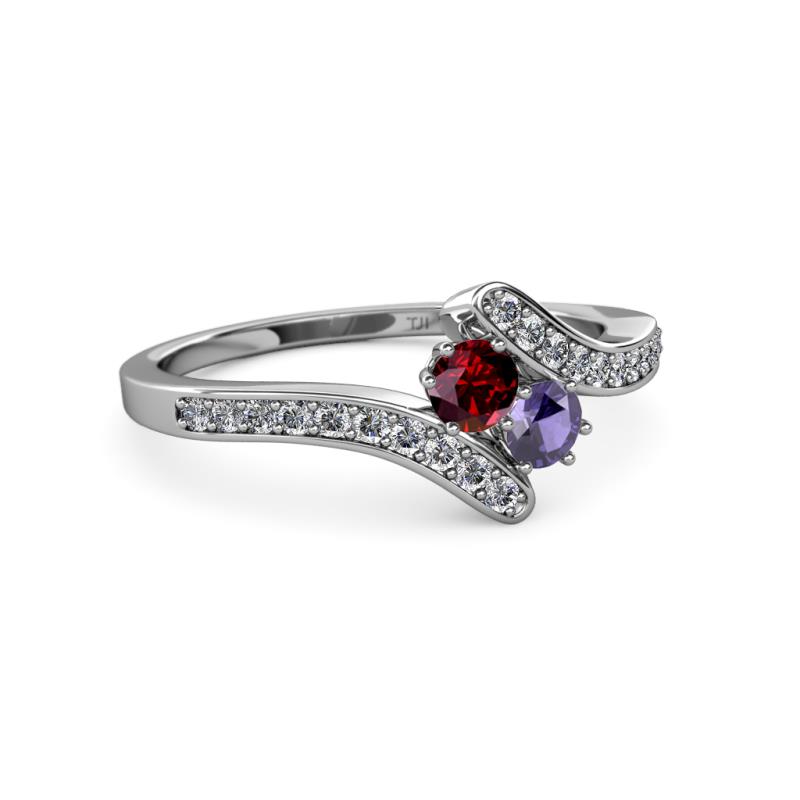 Ruby and Iolite 2 Stone with Side Diamonds Womens Bypass Engagement Ring 0.69 ctw 14K White Gold More Details ...