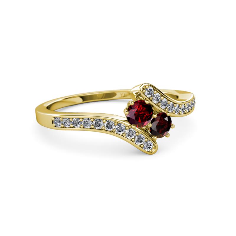 Ruby and Red Garnet 2 Stone with Side Diamonds Womens Bypass Engagement Ring 0.74 ctw 14K Yellow Gold More Details ...