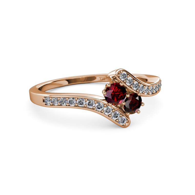Ruby and Red Garnet 2 Stone with Side Diamonds Womens Bypass Engagement Ring 0.74 ctw 14K Rose Gold More Details ...