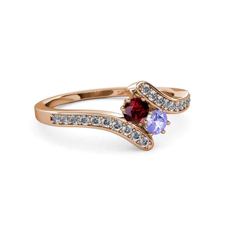 Ruby and Tanzanite 2 Stone with Side Diamonds Womens Bypass Engagement Ring 0.71 ctw 14K Rose Gold More Details ...