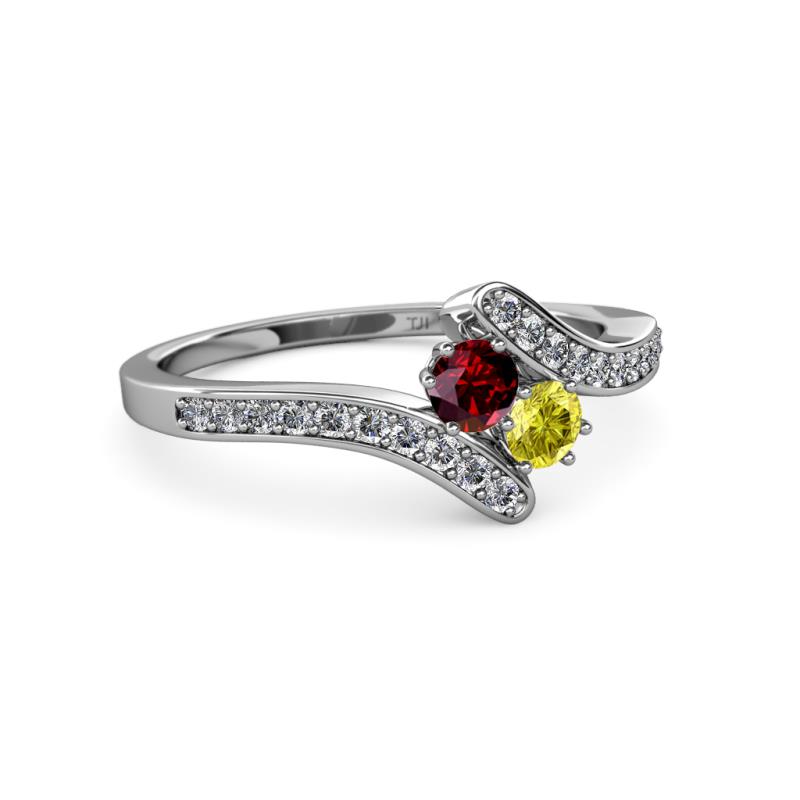 Ruby and Yellow Diamond 2 Stone with Side Diamonds Womens Bypass Engagement Ring 0.71 ctw 14K White Gold More Details ...