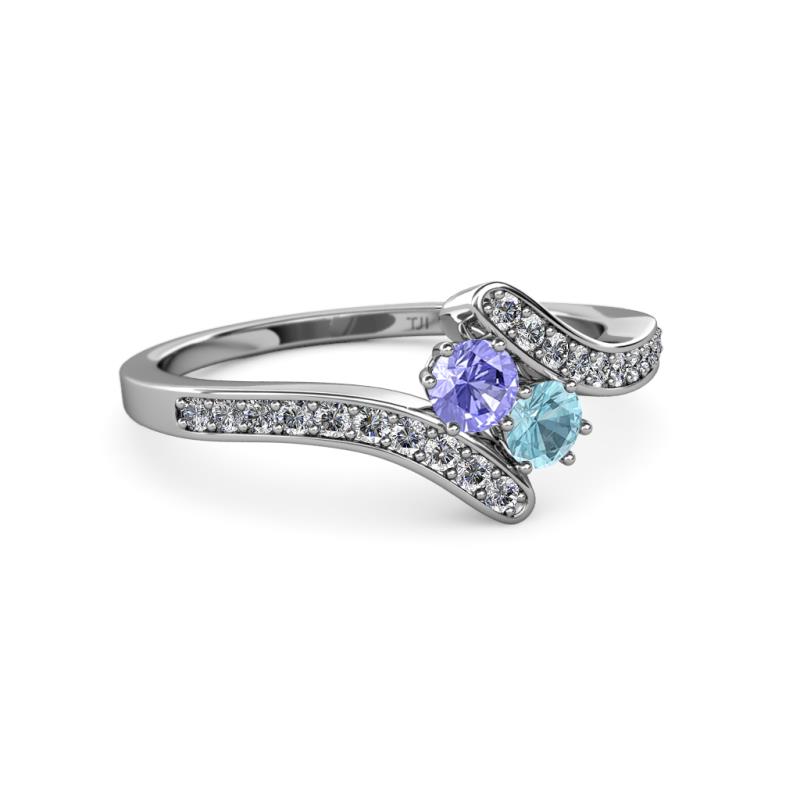 Tanzanite and Aquamarine 2 Stone with Side Diamonds Womens Bypass Engagement Ring 0.68 ctw 14K White Gold More Details ...