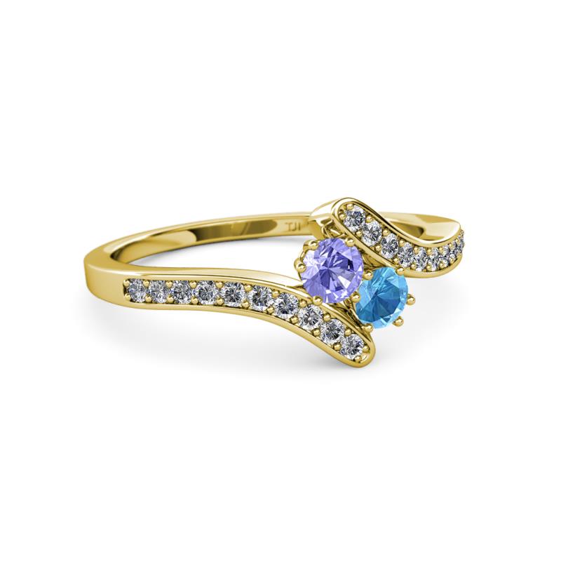 Tanzanite and Blue Topaz 2 Stone with Side Diamonds Womens Bypass Engagement Ring 0.72 ctw 14K Yellow Gold More Details ...