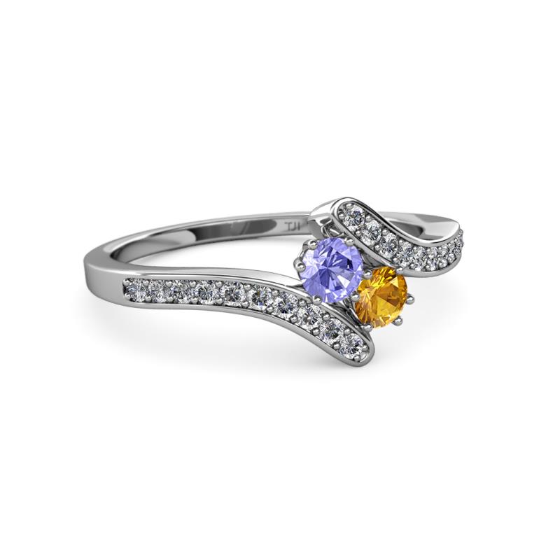 Tanzanite and Citrine 2 Stone with Side Diamonds Womens Bypass Engagement Ring 0.68 ctw 14K White Gold More Details ...