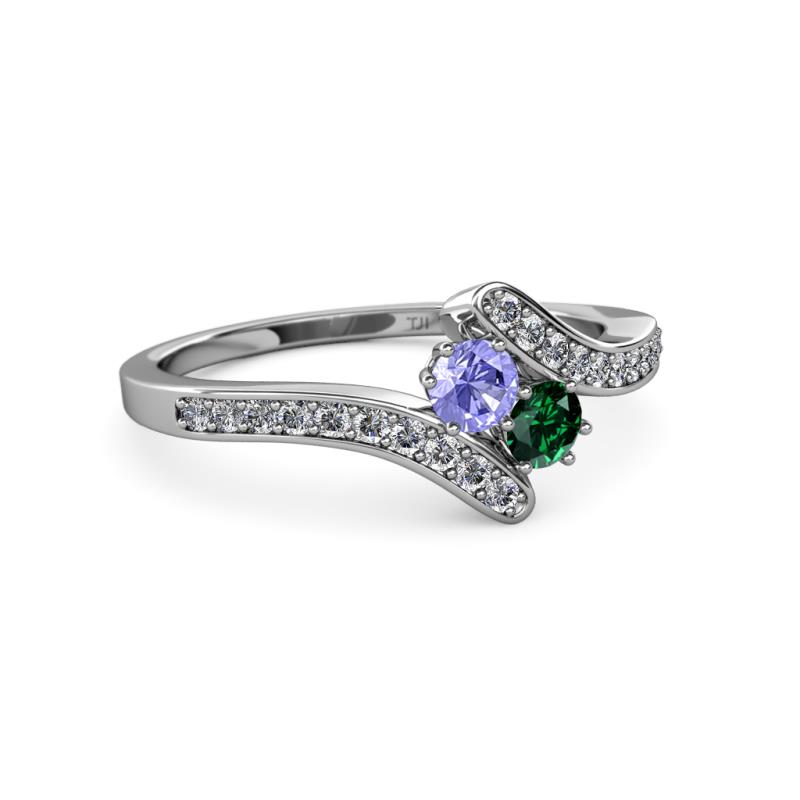 Tanzanite and Emerald 2 Stone with Side Diamonds Womens Bypass Engagement Ring 0.68 ctw 14K White Gold More Details ...