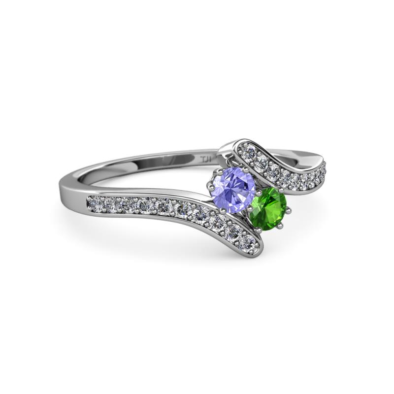 Tanzanite and Green Garnet 2 Stone with Side Diamonds Womens Bypass Engagement Ring 0.73 ctw 14K White Gold More Details ...