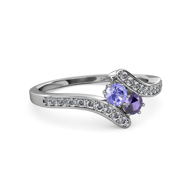 Tanzanite and Iolite 2 Stone with Side Diamonds Womens Bypass Engagement Ring 0.68 ctw 14K White Gold More Details ...