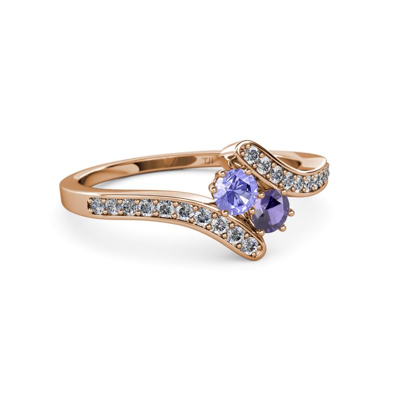 Tanzanite and Iolite 2 Stone with Side Diamonds Womens Bypass Engagement Ring 0.68 ctw 14K Rose Gold More Details ...