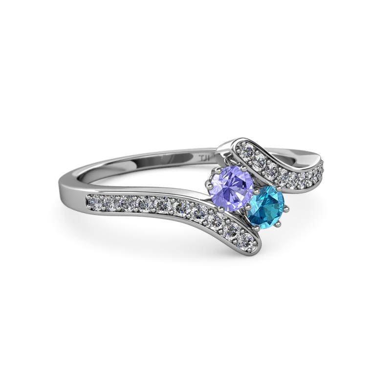 Tanzanite and London Blue Topaz 2 Stone with Side Diamonds Womens Bypass Engagement Ring 0.72 ctw 14K White Gold More Details ...