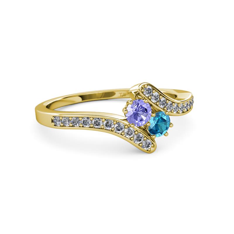 Tanzanite and London Blue Topaz 2 Stone with Side Diamonds Womens Bypass Engagement Ring 0.72 ctw 14K Yellow Gold More Details ...