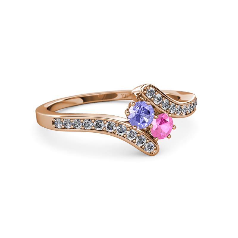 Tanzanite and Pink Sapphire 2 Stone with Side Diamonds Womens Bypass Engagement Ring 0.71 ctw 14K Rose Gold More Details ...
