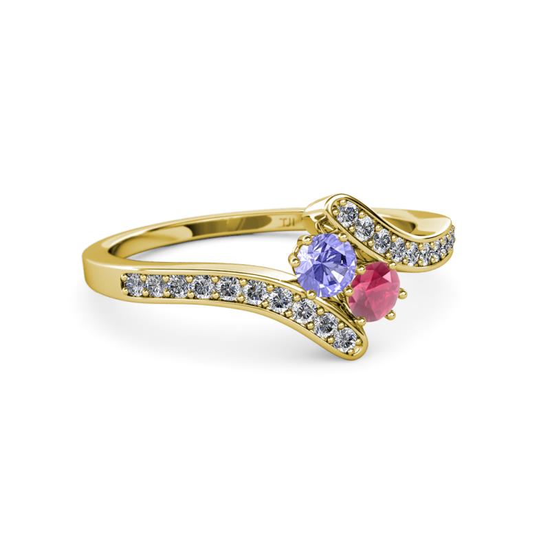 Tanzanite and Rhodolite Garnet 2 Stone with Side Diamonds Womens Bypass Engagement Ring 0.73 ctw 14K Yellow Gold More Details ...