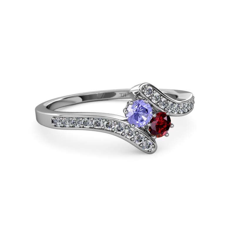 Tanzanite and Ruby 2 Stone with Side Diamonds Womens Bypass Engagement Ring 0.71 ctw 14K White Gold More Details ...