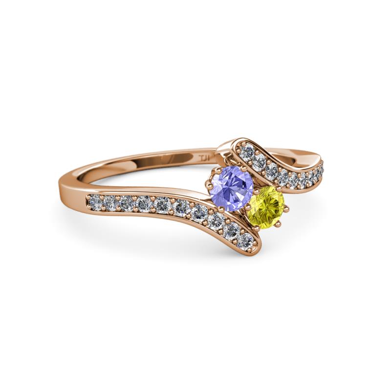 Tanzanite and Yellow Diamond 2 Stone with Side Diamonds Womens Bypass Engagement Ring 0.70 ctw 14K Rose Gold More Details ...