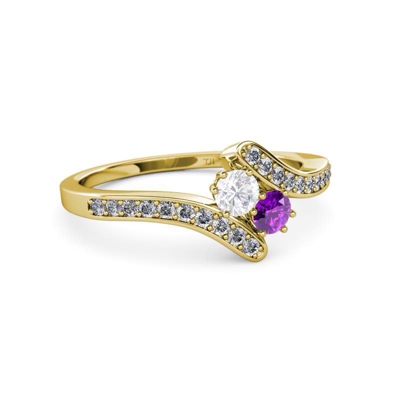 White Sapphire and Amethyst 2 Stone with Side Diamonds Womens Bypass Engagement Ring 0.69 ctw 14K Yellow Gold More Details ...