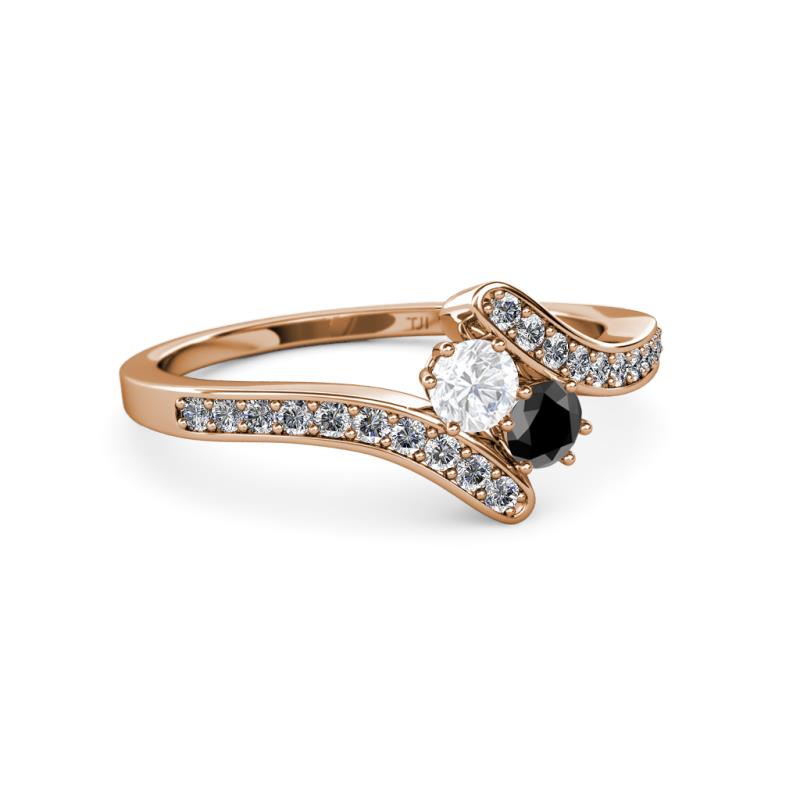 White Sapphire and Black Diamond 2 Stone with Side Diamonds Womens Bypass Engagement Ring 0.72 ctw 14K Rose Gold More Details ...