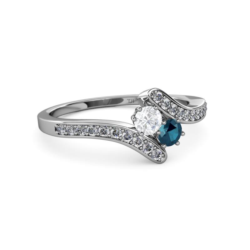 White Sapphire and Blue Diamond 2 Stone with Side Diamonds Womens Bypass Engagement Ring 0.71 ctw 14K White Gold More Details ...