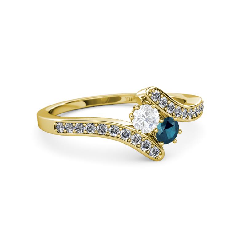 White Sapphire and Blue Diamond 2 Stone with Side Diamonds Womens Bypass Engagement Ring 0.71 ctw 14K Yellow Gold More Details ...