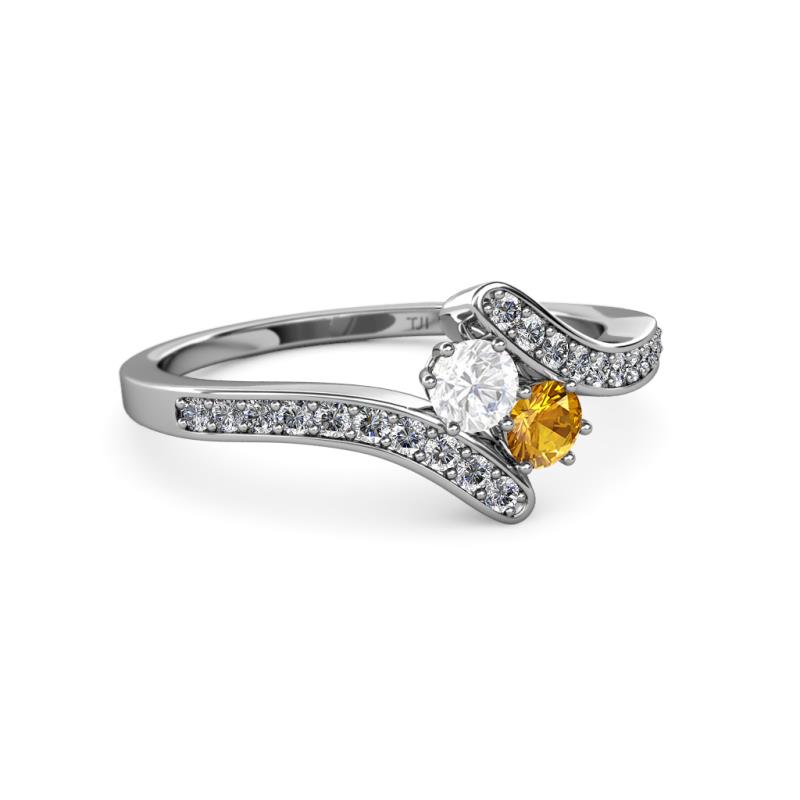 White Sapphire and Citrine 2 Stone with Side Diamonds Womens Bypass Engagement Ring 0.69 ctw 14K White Gold More Details ...