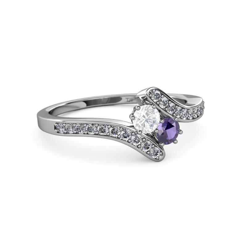 White Sapphire and Iolite 2 Stone with Side Diamonds Womens Bypass Engagement Ring 0.69 ctw 14K White Gold More Details ...