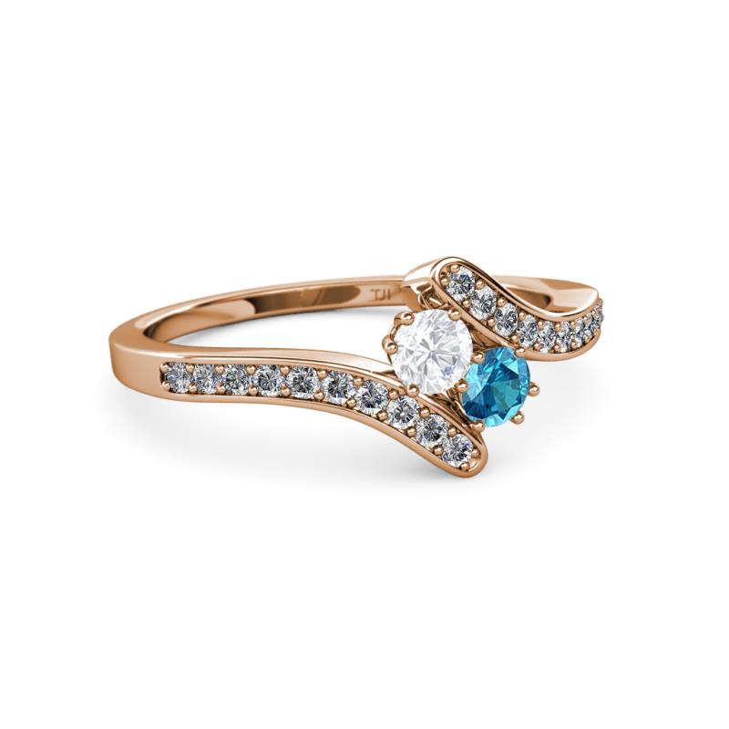 White Sapphire and London Blue Topaz 2 Stone with Side Diamonds Womens Bypass Engagement Ring 0.73 ctw 14K Rose Gold More Details ...