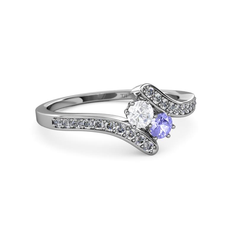 White Sapphire and Tanzanite 2 Stone with Side Diamonds Womens Bypass Engagement Ring 0.71 ctw 14K White Gold More Details ...