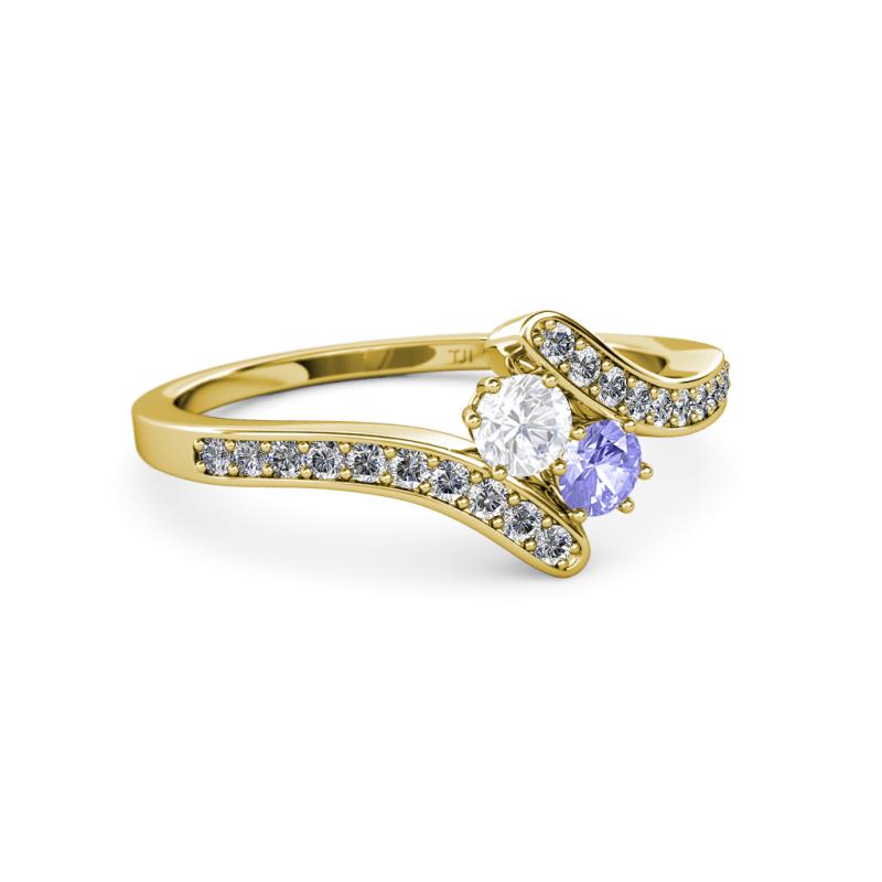White Sapphire and Tanzanite 2 Stone with Side Diamonds Womens Bypass Engagement Ring 0.71 ctw 14K Yellow Gold More Details ...