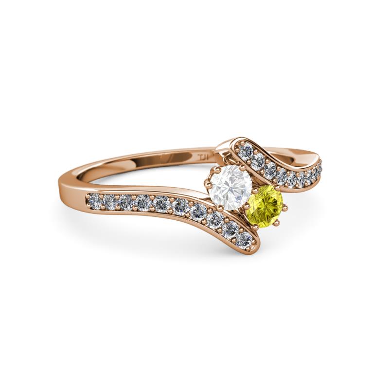 White Sapphire and Yellow Diamond 2 Stone with Side Diamonds Womens Bypass Engagement Ring 0.71 ctw 14K Rose Gold More Details ...