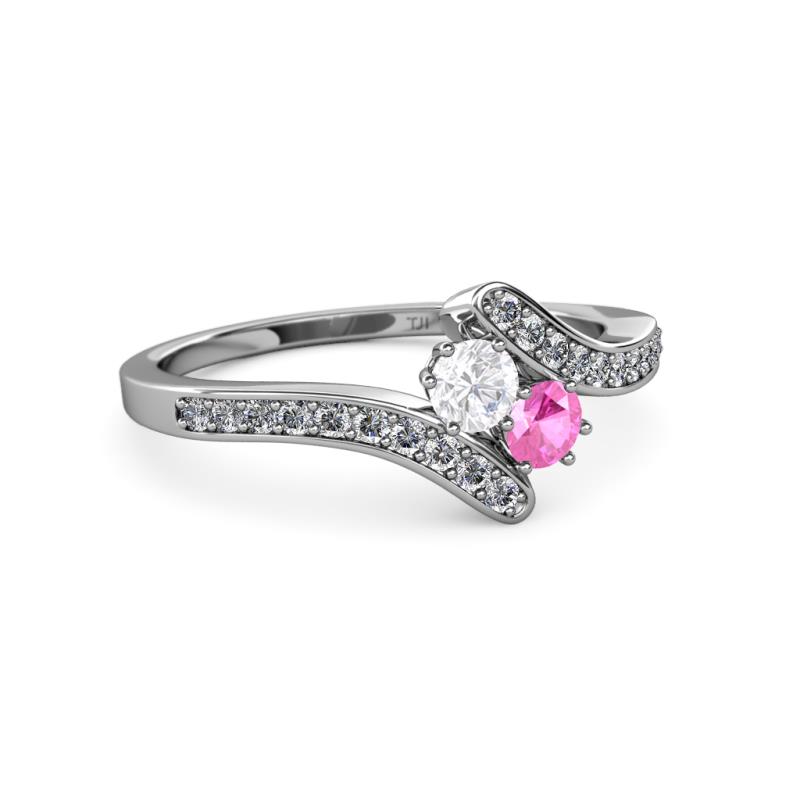 Designed with a meaningful expression of love, this Ring have mesmerizing combination of White Sapphire & Pink Sapphire which represents you & your loved one embraced by fascinating Diamond bypass shank symbolizing that your life revolves around each other.