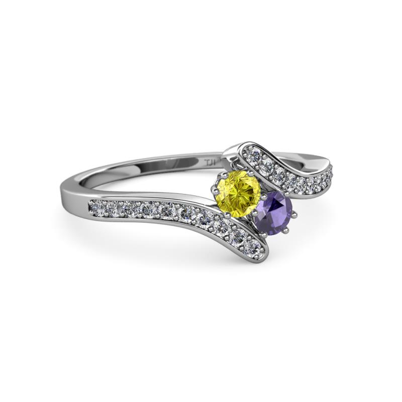Yellow Diamond and Iolite 2 Stone with Side Diamonds Womens Bypass Engagement Ring 0.68 ctw 14K White Gold More Details ...