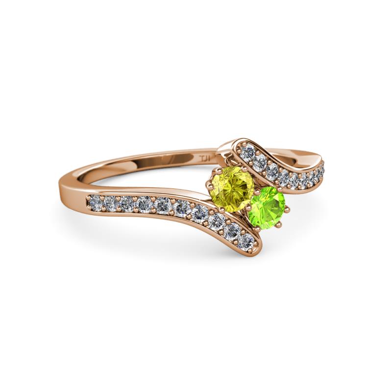 Yellow Diamond and Peridot 2 Stone with Side Diamonds Womens Bypass Engagement Ring 0.73 ctw 14K Rose Gold More Details ...