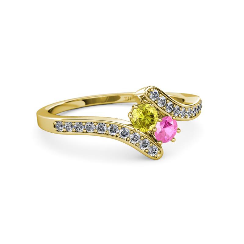 Yellow Diamond and Pink Sapphire 2 Stone with Side Diamonds Womens Bypass Engagement Ring 0.71 ctw 14K Yellow Gold More Details ...