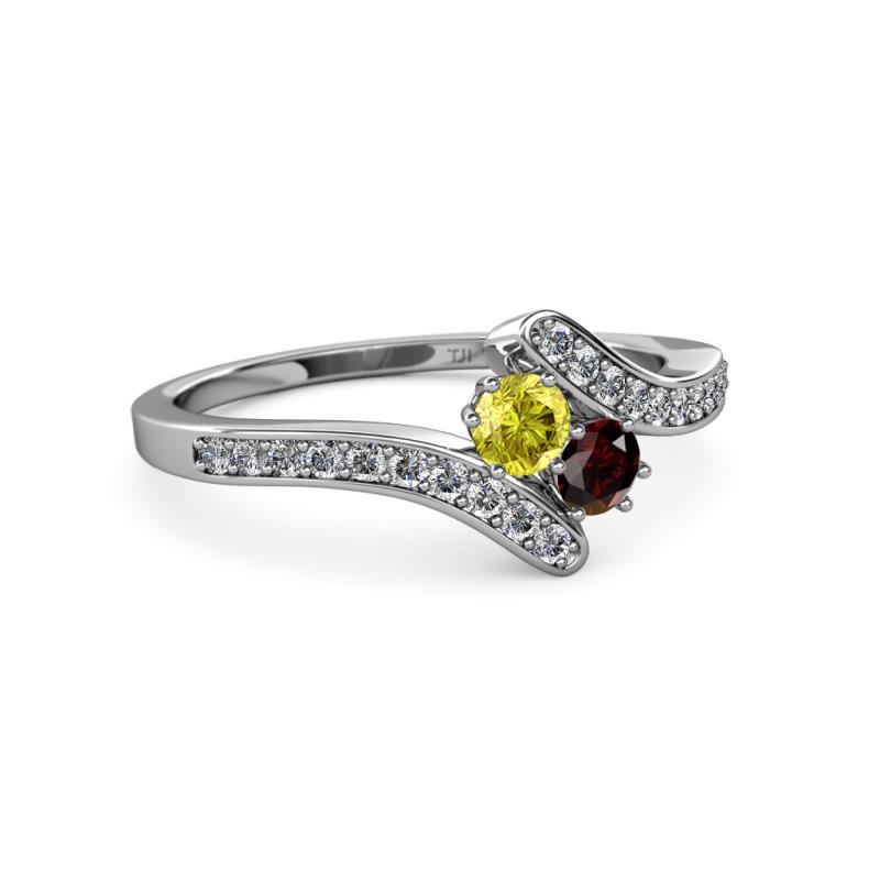 Yellow Diamond and Red Garnet 2 Stone with Side Diamonds Womens Bypass Engagement Ring 0.73 ctw 14K White Gold More Details ...